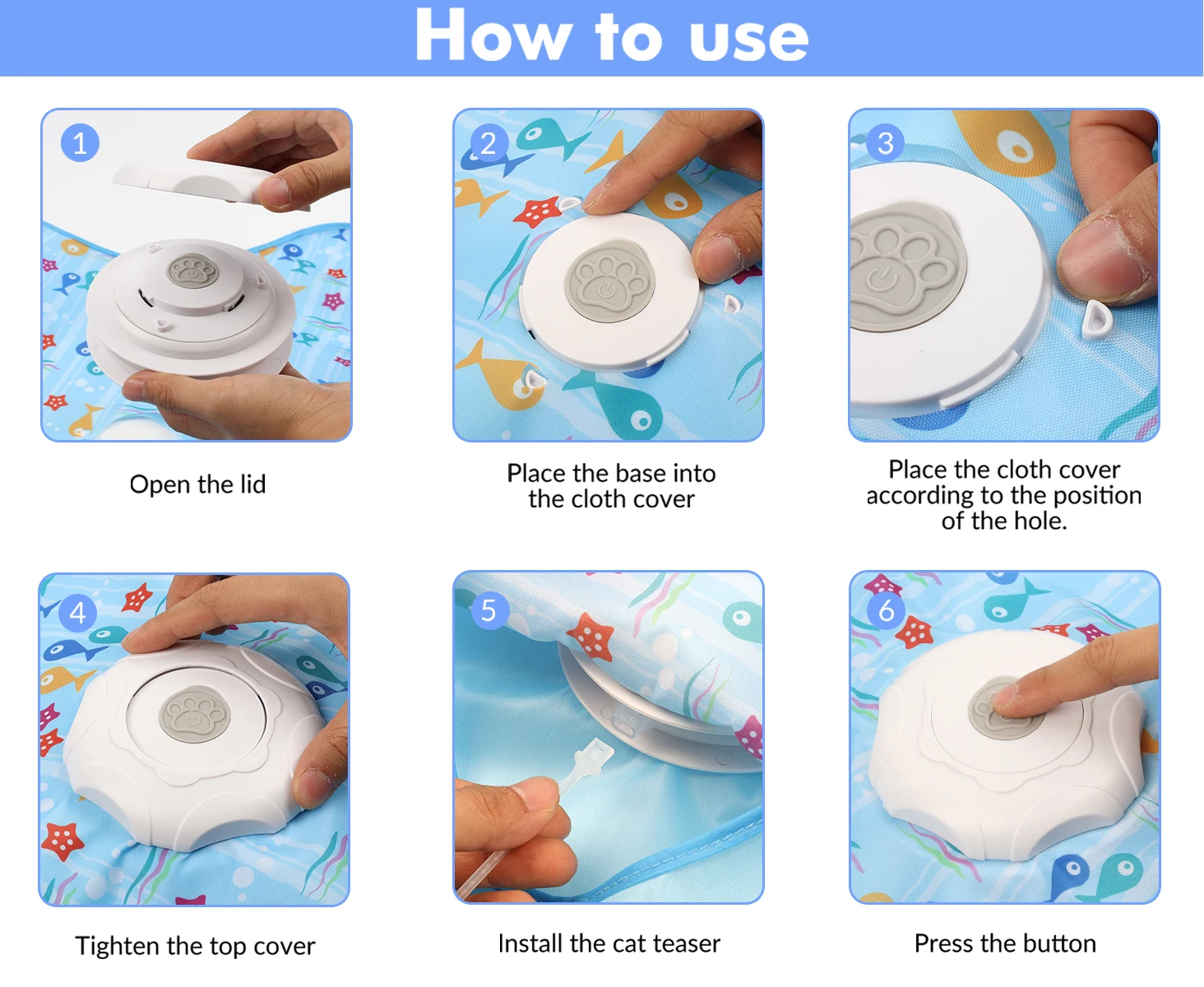 1. Electronic Invisible Cat Toy:The interactive cat toy consists of a cat pad and a moving feather stick, like an ambush hide and seek game The fluffy feathers are hidden in irregular cloth covers and move quickly, attracting cats to explore and pounce, releasing energy, making it easy for both kittens and adult cats to pick them up.